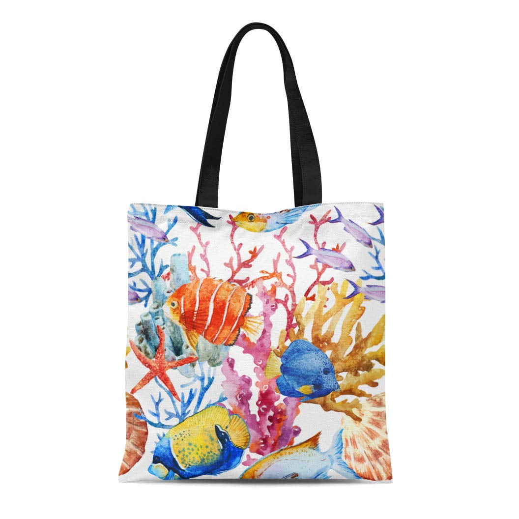 Sidonku Canvas Bag Resuable Tote Grocery Shopping Bags Watercolor Sea Fish Ocean Water Color Pattern Corals Colorful Underwater Tote Bag Walmart Com