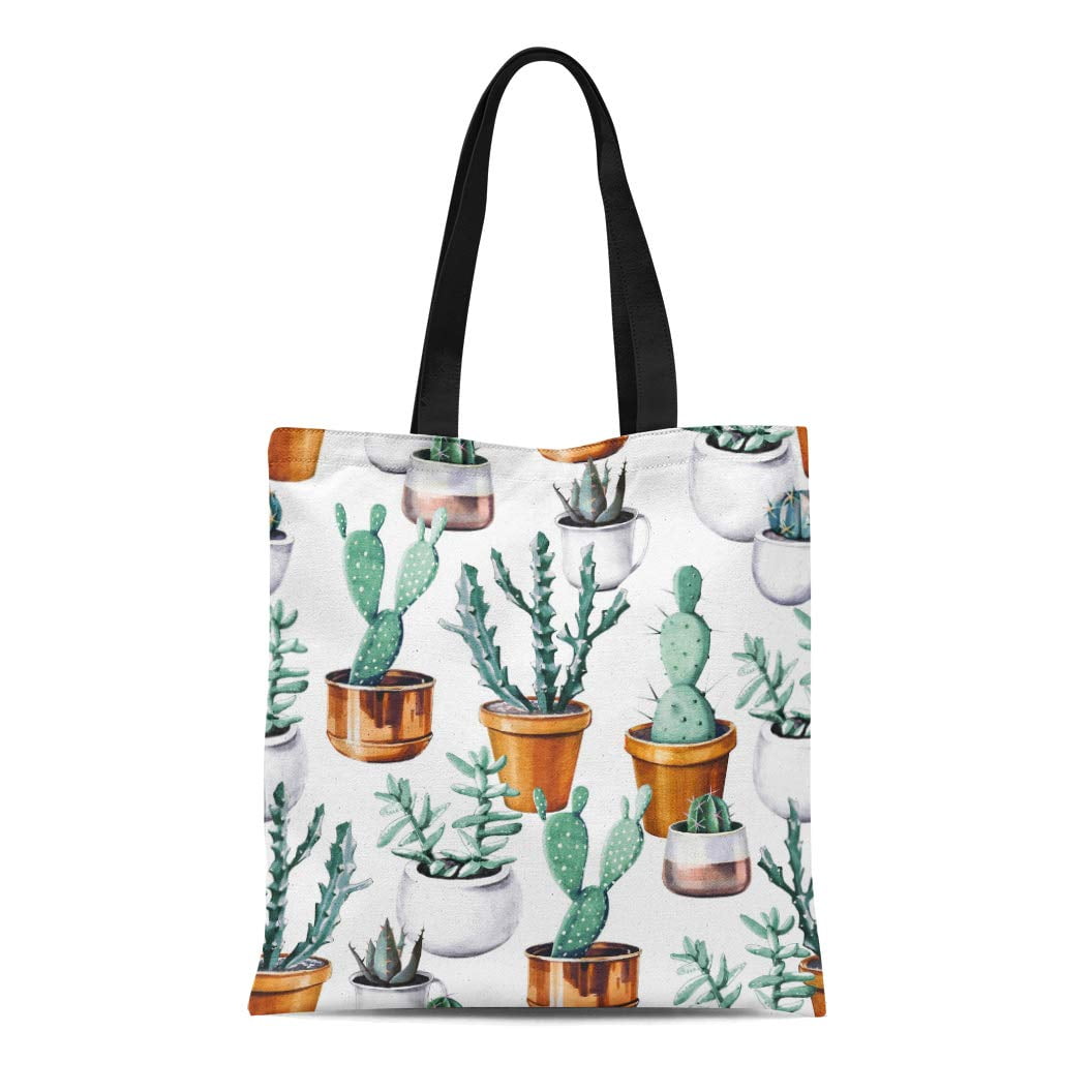 Sidonku Canvas Tote Bag Watercolor Cactus In Pot Tropical Garden Watercolour Succulent Pattern Durable Reusable Shopping Shoulder Grocery Bag Walmart Com